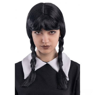 Crna perika sa pletenicama za kostim