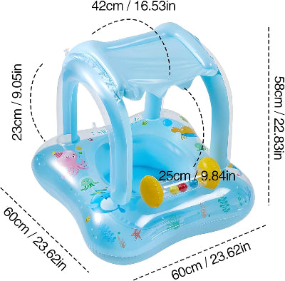 Sa dimenzijama od 60cm x 60cm i visinom od 58cm, ova plutajuca naprava za bebe je idealna za bazene i plitku vodu. Lako se naduvava i izduvava, sto je cini prakticnom za skladistenje i transport.