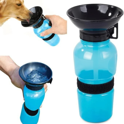 Ova inovativna flasica za vodu za psa dizajnirana je da u potpunosti zadovolji potrebe vašeg čupavog prijatelja. Funkcioniše kao dva u jedan – transparentna, plava (ili roze) boca za vodu je čvrsto povezana sa praktičnom crnom posudom za piće u obliku levka. Jednostavno pritisnite dugme ili okrenite bocu (na osnovu slika, voda se sipa u levak), i posuda se puni svežom vodom, spremnom da vaš pas odmah utoli žeđ.