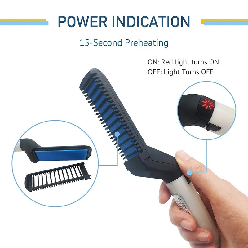Kombinuje grejnu plocu i zube češlja za ravnanje kose i brade