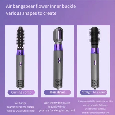 Predstavljamo vam profesionalni fen cetka 3u1 koji ce transformisati vasu rutinu stilizovanja kose. Ovaj multifunkcionalni uredjaj za kosu omogucava vam da istovremeno susite i oblikujete kosu, postizuci salonske rezultate kod kuce. Slike jasno prikazuju tri glavna nastavka: fen za kosu, cetka za ispravljanje i cetka za lokne. Sa ovim nastavcima, mozete da postignete razlicite frizure, od ravne i sjajne kose do prelepih, mekanih lokni.