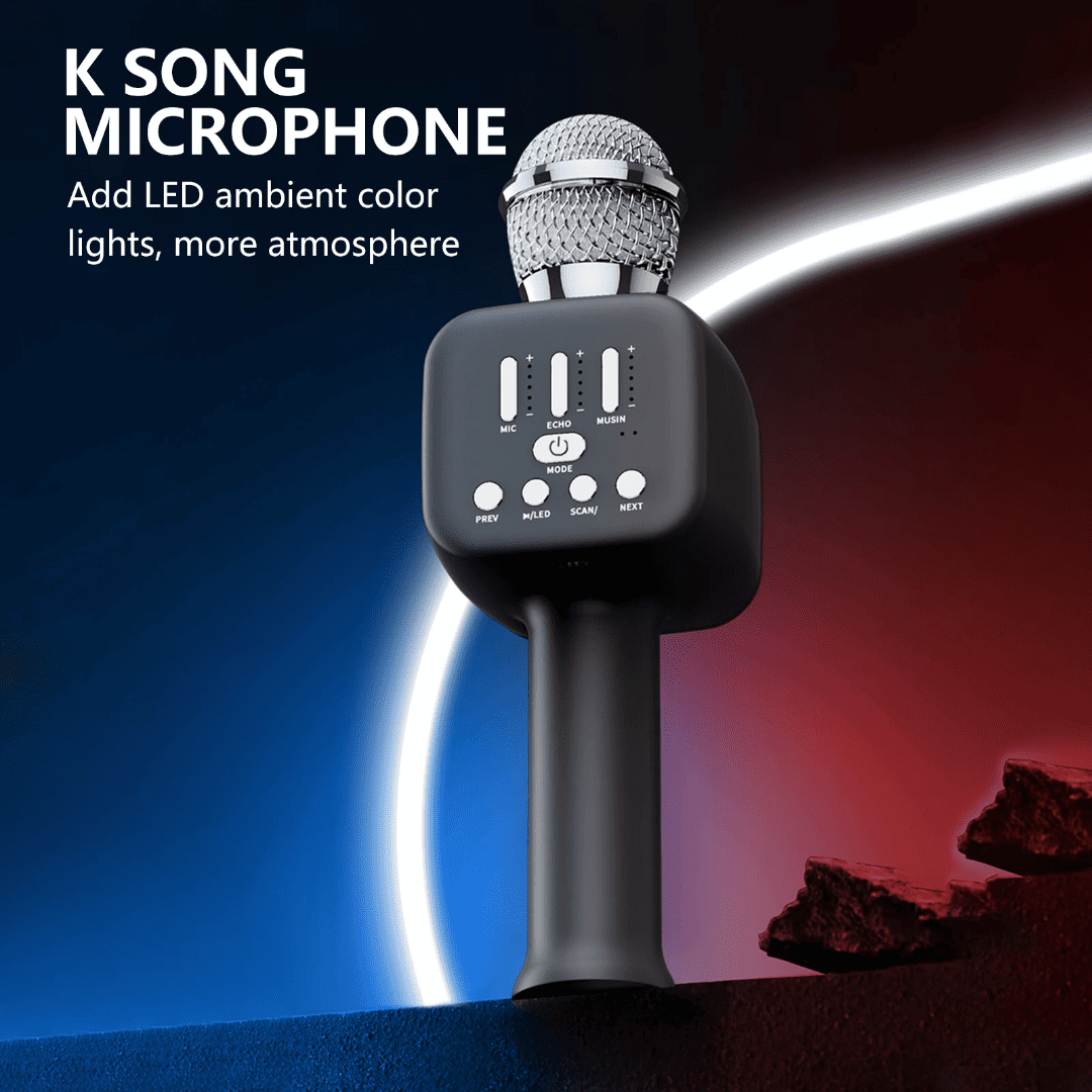 Ovaj prenosivi karaoke uredjaj donosi zabavu u svaki prostor i pretvara svako okupljanje u pravo pevanje uz muziku. Kombinacija bezicnog karaoke mikrofona, ugradjenog zvucnika i vizuelnih svetlosnih efekata omogucava uzivanje u pesmi bez dodatne opreme.