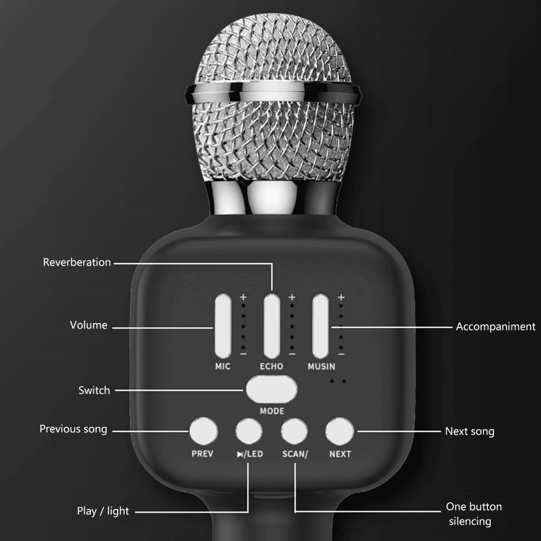 Prema prikazima na slikama, uredjaj poseduje intuitivne kontrole za jacinu mikrofona, echo efekat i kontrolu muzike, sto omogucava prilagodjavanje zvuka prema sopstvenim zeljama. Ugradjeno LED ambijentalno osvetljenje reaguje tokom rada i stvara pravu karaoke atmosferu u zatvorenom prostoru.