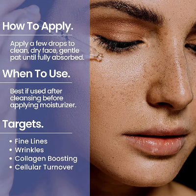 Jedinstvena formula ovog seruma je obogacena dragocenim ekstraktima koji deluju kao anti-aging sredstva. Sastoji se od 100% prirodnih i veganskih sastojaka, bez glutena, i nije testiran na zivotinjama (cruelty-free). Proizvod je nekomedogen, sto znaci da nece zapusiti pore. Lako se nanosi pomocu pipete, sto omogucava precizno doziranje. Za najbolje rezultate, naneti nekoliko kapi seruma na cisto i suvo lice dva puta dnevno.