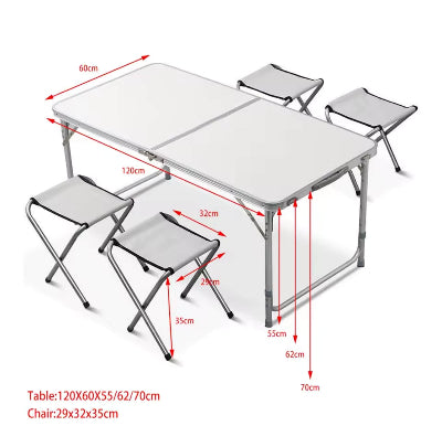 Uživajte u svakom trenutku provedenom na otvorenom uz naš praktični prenosivi komplet za sve vaše avanture. Ovaj sveobuhvatni set uključuje kompaktan sklopivi sto i četiri izuzetno korisne stolice za izlete, pružajući vam idealno rešenje za udobnost bilo gde da se nađete – bilo to kampovanje u Srbiji, opuštanje u dvorištu ili spontani piknik.