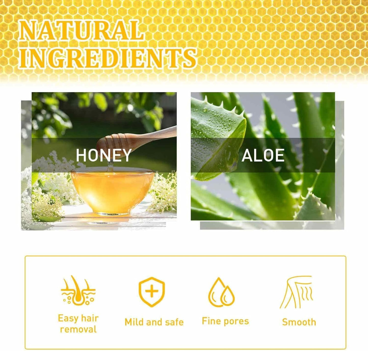 Formula je obogacena prirodnim sastojcima, poput meda i aloje, koji dubinski hidriraju kozu i sprecavaju isusivanje. Deluje direktno na koren dlake, slabi dlacicu i omogucava njeno lako uklanjanje bez traga. Zahvaljujuci svom sastavu, nakon tretmana vasa koza ce ostati glatka, nezna i mekana na dodir.