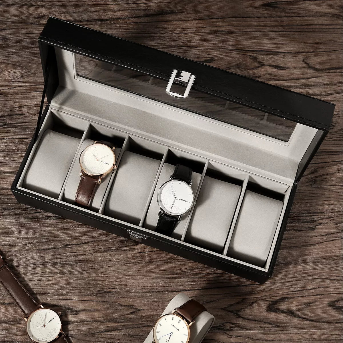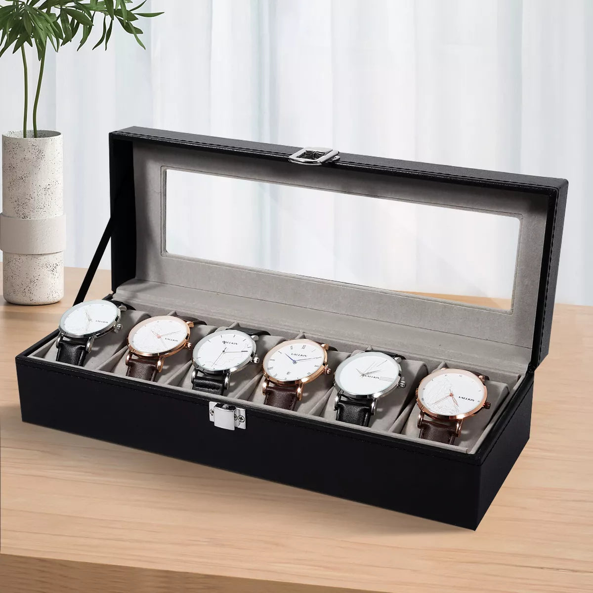 Izradjena od visokokvalitetnih materijala, ova kutija za satove poseduje mekanu unutrasnjost koja ce pazljivo obaviti svaki vas sat. Njenih sest individualnih pregrada omogucavaju vam da organizujete vasu kolekciju po zelji, bilo da se radi o muskim ili zenskim satovima. Providni poklopac omogucava vam da lako izaberete zeljeni sat bez potrebe da otvarate kutiju, sto je cini izuzetno prakticnom.