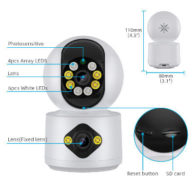 Unapredite bezbednost svog doma uz Pametnu Wi-Fi Kameru Dvojno Socivo Rotirajuca Nadzor. Ova inovativna kamera je idealno resenje za nadzor beba, pracenje kucnih ljubimaca ili opstu sigurnost doma. Sa dva sociva i dual screen prikazom, omogucava istovremeni pregled dve razlicite lokacije, pruzajuci vam potpunu kontrolu nad prostorom. Zaboravite na slepe tacke!