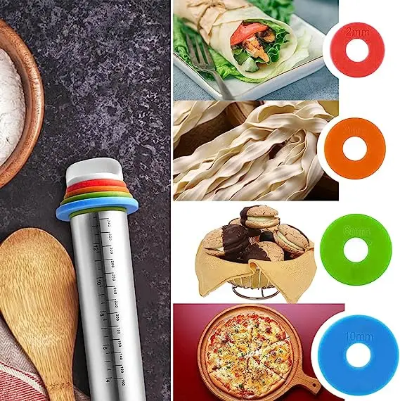 Ono sto ovu oklagiju izdvaja su cetiri seta prstenova u razlicitim bojama, koji sluze kao precizni granicnici za debljinu testa. Lako ih menjajte i postizite zeljenu debljinu od 2 mm, 3 mm, 6 mm ili 10 mm. Bilo da vam je potrebna tanka kora za torteline i pizze, srednja debljina za hrskave kekse ili deblja osnova za mekane kolacice, ova oklagija ce vam omoguciti potpunu kontrolu.