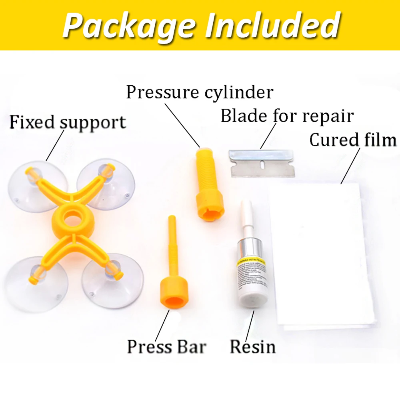 Sadrzaj paketa je pazljivo odabran kako bi omogucio kompletan proces popravke. U setu dobijate posebnu smolu koja popunjava ostecenje i cini ga skoro nevidljivim. Smola je izuzetno otporna na vodu i UV zrake, obezbedjujuci dugotrajnost popravke. Takodje, vakuumski drzac sa cetiri usisne casice i mehanizmom za pritisak garantuje stabilnost i pravilan pritisak tokom rada. Set sadrzi i ostricu za zavrsnu obradu i foliju za ucvrscivanje, sto cini proces popravke brzim i bez posebnih alata.