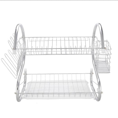 Gornji nivo je savršen za tanjire i plitko posuđe, dok se na donjem nivou suše činije, šolje i čaše. Sa bočne strane nalazi se korpa za escajg i držač za čaše, omogućavajući vam da sve organizujete na jednom mestu. Izrađena od hromirane žice, otporna je na rđu i koroziju, što garantuje dugotrajnost i sjaj.