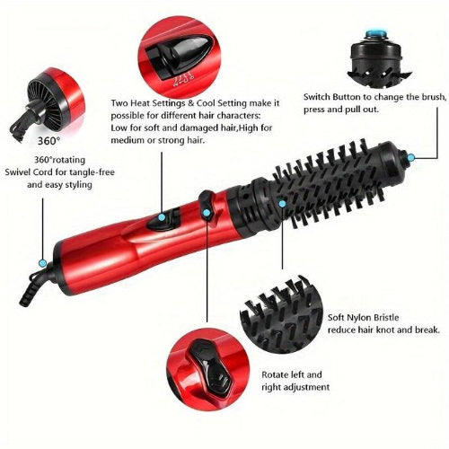 Iskusite savrsenstvo u stilizovanju kose uz nasu revolucionarnu 2 u 1 vrelu cetku za kosu! Zaboravite na gomilu uredjaja i provedite manje vremena stilizujuci vasu kosu. Ova inovativna cetka kombinuje tri esencijalne funkcije u jednom elegantnom uredjaju: fen za kosu, cetku za rascesljavanje i stajler za kosu.