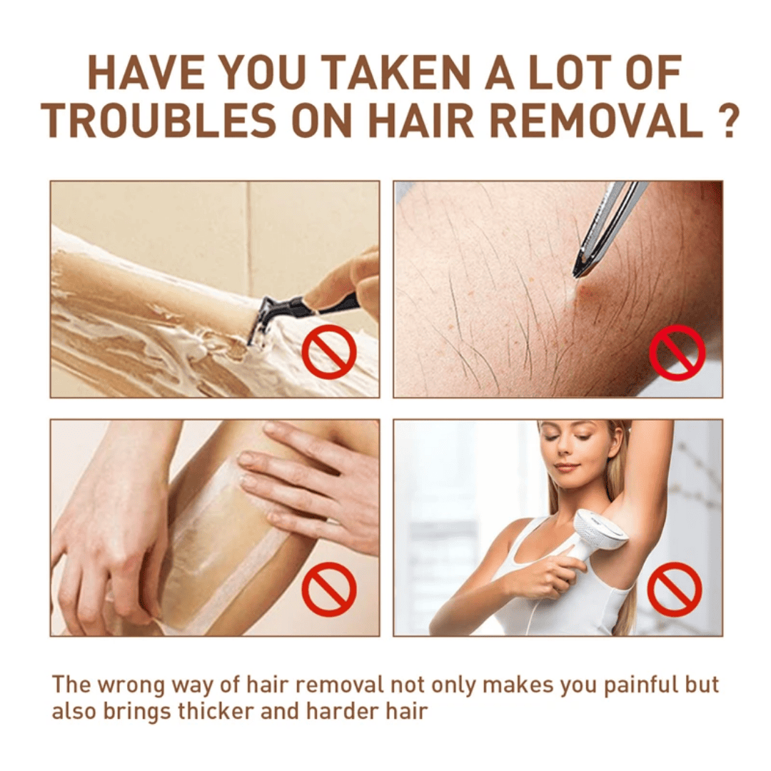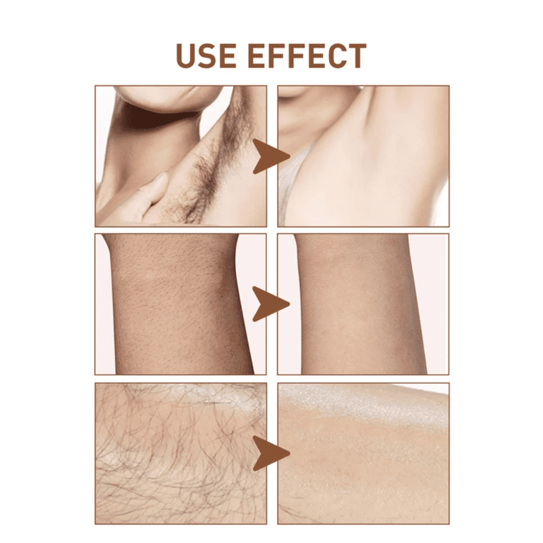 Na slikama je jasno prikazan efekat pre i posle upotrebe, gde se vidi ravnomerno uklanjanje dlaka i ujednacen izgled koze. Za razliku od mehanickih metoda, ova krema za uklanjanje dlaka ne ostavlja vidljive tackice, posekotine niti crvenilo.